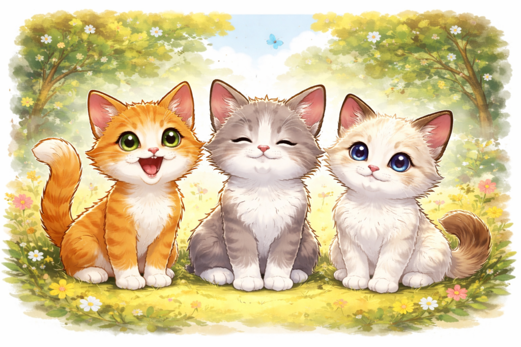 ここからは「三びきの子猫」から学ぶ、人が感じる三つの幸せをほどいていくよ。